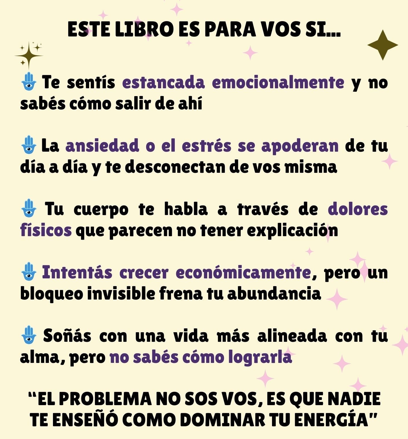 Para nada. Este libro es para almas curiosas, no para expertos. Si tenés cuerpo, emociones y buscás bienestar... ya estás lista. Te acompaña desde cero y te lleva paso a paso hacia tu poder interior.